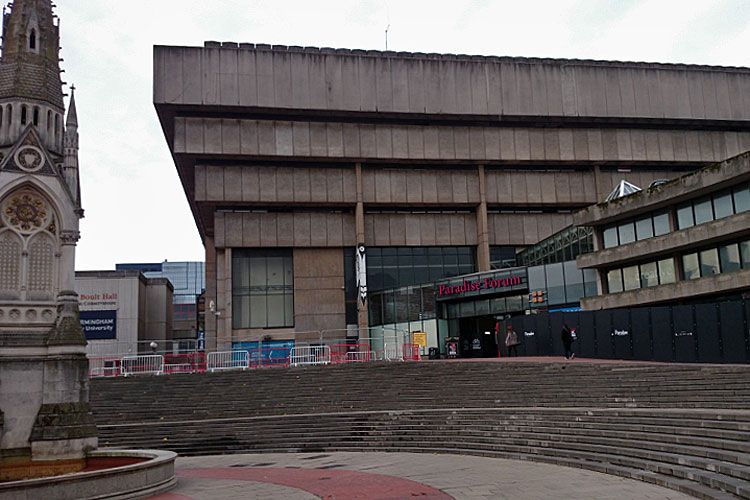 Paradise Forum lige ved siden af vores hotel er væk, næste gang vi kommer til Birmingham. Hele området skal gennem en kæmpe modernisering, der efter planen først er helt færdig i 2025, men første skridt er opførelsen af to nye bygninger på denne plads.