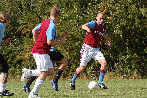 Efter lidt opvarmning og skudtræning var vi klar til dagens første kamp, der stod mod Newcastle. Vores målmand og ironman fra sidste år, Jan, fik tjansen i målet igen i år, og foran sig havde han et forsvar med Martin Qvist og Karsten, mens Peter var defensiv midtbane. Midtbanen bestod af Anton og Andreas, og Martin Tullin var angriber, mens Christian og formanden havde meldt sig til at begynde på bænken. Fra kampens start kom vi under pres, og Newcastle var flere gange tæt på, men med nogle flotte redninger holdt Jan os inde i kampen. Men så tog Anton sagen i egen hånd og driblede gennem hele hele Newcastles forsvar og udenom målmanden, og så var vi foran 1-0. Føringen skulle have været udbygget kort efter, da Jan med et præcist udspark sendte Martin Tullin af sted - alene med Newcastles målmand. Desværre afsluttede Martin lige på målmanden, og selvom han også senere i kampen fik flere gode chancer, lykkedes det os ikke at komme yderligere foran. Til gengæld fik Newcastle mere og mere spil rundt om vores straffesparksfelt, men der skulle et langskud til, der blev rettet af på vejen mod mål og dermed snød Jan, før de til sidst fik udlignet. Mod slutningen af kampen lavede Karsten et godt 'rush' i banens venstre side og sendte bolden ind til Anton, men desværre strøg afslutningen lige over mål, og kampen endte 1-1.