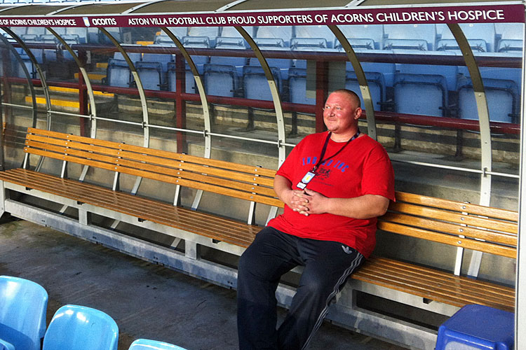 De fem, som fløj fra København, havde åbnet turen med nogle solide burgere, og det blev også til lidt øl i hotellets bar, inden turen gik mod Villa Park, hvor der var tid til at bruge lidt pund i souvenirbutikken, før der var stadionrundvisning på programmet. Især Martin fik for alvor svinget kreditkortet og var gennem kassen flere gange, før fredagens indkøb var fuldført - det skulle senere vise sig, at der skulle meget mere Aston Villa merchandise i hans kuffert! Keith Ansell var vores guide, der skulle vise rundt på Villa Park, og vi fik den længste og mest grundige rundvisning og historiefortælling i fanklubbens historie. Efter en forfriskning i Players Lounge og en introduktion i presserummet gik turen rundt til omklædningsrum, udskiftningsbokse, lounger osv. osv. Selvom flere af os havde været på rundvisning før, fik Keith alligevel fortalt detaljer fra klubbens historie, vi ikke vidste, og han viste os steder, inden af os havde været før - bl.a. kom vi ind i klubejer Randy Lerners private, men dog ret beskedne, boks på Trinity Road Stand, ligesom vi fik set de fornemme 'executive boxes', hvor en boks med plads til 12 personer kan lejes for godt 310.000 kr. for en sæson, og det lykkedes faktisk Keith at få enkelte deltagere til at overveje muligheden for at gå sammen og leje en boks... Meget belejliget havde Martin brug for et toilet, netop som vi var på vej mod Randy Lerners boks, så nu kan han prale med at have brugt klubejerens private toilet på Villa Park!