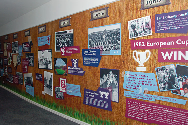 I hjørnet mellem North Stand og Doug Ellis Stand er klubben ved at indrette et lille museum bl.a. med denne væg, der i tekst og billeder giver et overblik over klubbens historie.