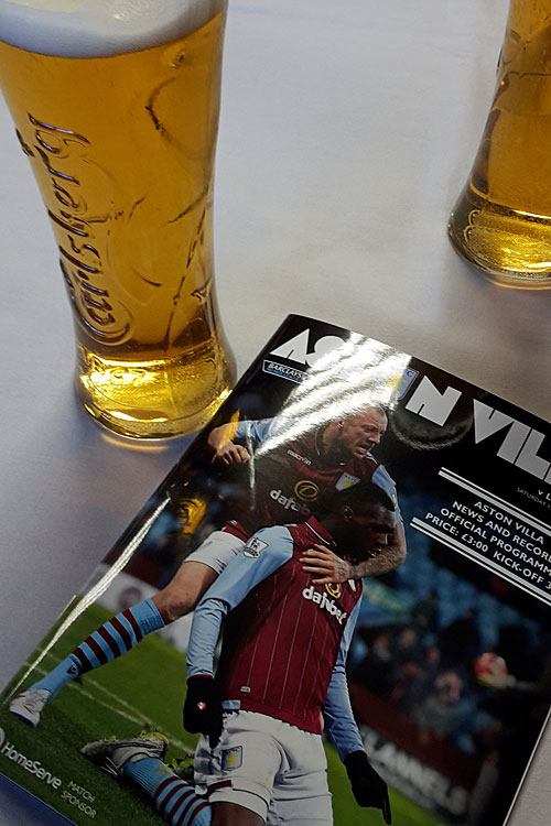 Før kampen var der blevet skrevet meget om en protest, hvor tilskuerne skulle blive væk fra deres pladser de første otte minutter, som symbol på de otte år Randy Lerner har været ejer af Aston Villa. Der var nogle få hundrede, som deltog i protesten, men det var ikke noget, man mærkede til, og vi var alle 14 på vores pladser, da kampen gik i gang. På nær for de to Liverpool-fans, som i øvrigt - fornuftigt nok - forholdt sig meget rolige under hele kampen, blev kampen ikke nogen god oplevelse. Villa havde måske et kvarter i 2. halvleg, efter det spanske nyindkøb Carles Gil var blevet skiftet ind, hvor de leverede en fin offensiv indsats og fik skabt nogle chancer, men helt farlige blev de aldrig. Og når Jores Okore glemmer at dække op, og Fabian Delph afleverer bolden direkte til en Liverpool-spiller lige udenfor eget straffesparksfelt, ja så ender der med et nederlag og i det her tilfælde 0-2.
